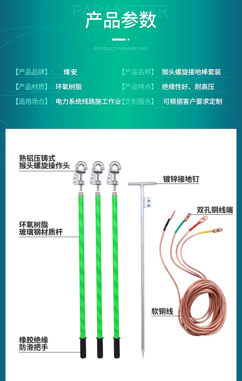 產品材質:無氧銅,環氧樹脂桿